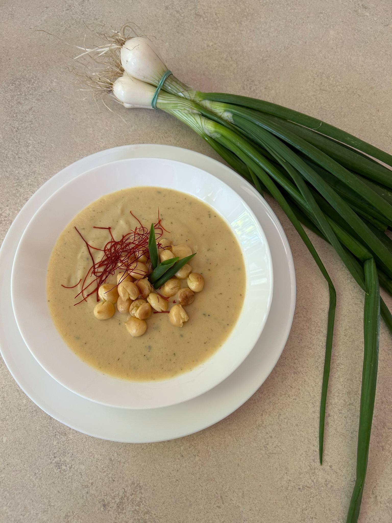 Subtelny jak letni wiatr, ciepły jak wspólne śmiechy, aksamitny jak marzenia zapisane na kartkach – vege krem z białych warzyw z ptysiowym groszkiem i szczypiorkową nutą. Wygląda i smakuje świetnie. Jest przygotowany ze świeżych warzyw i oczywiście bez mięsa. Zapraszamy.