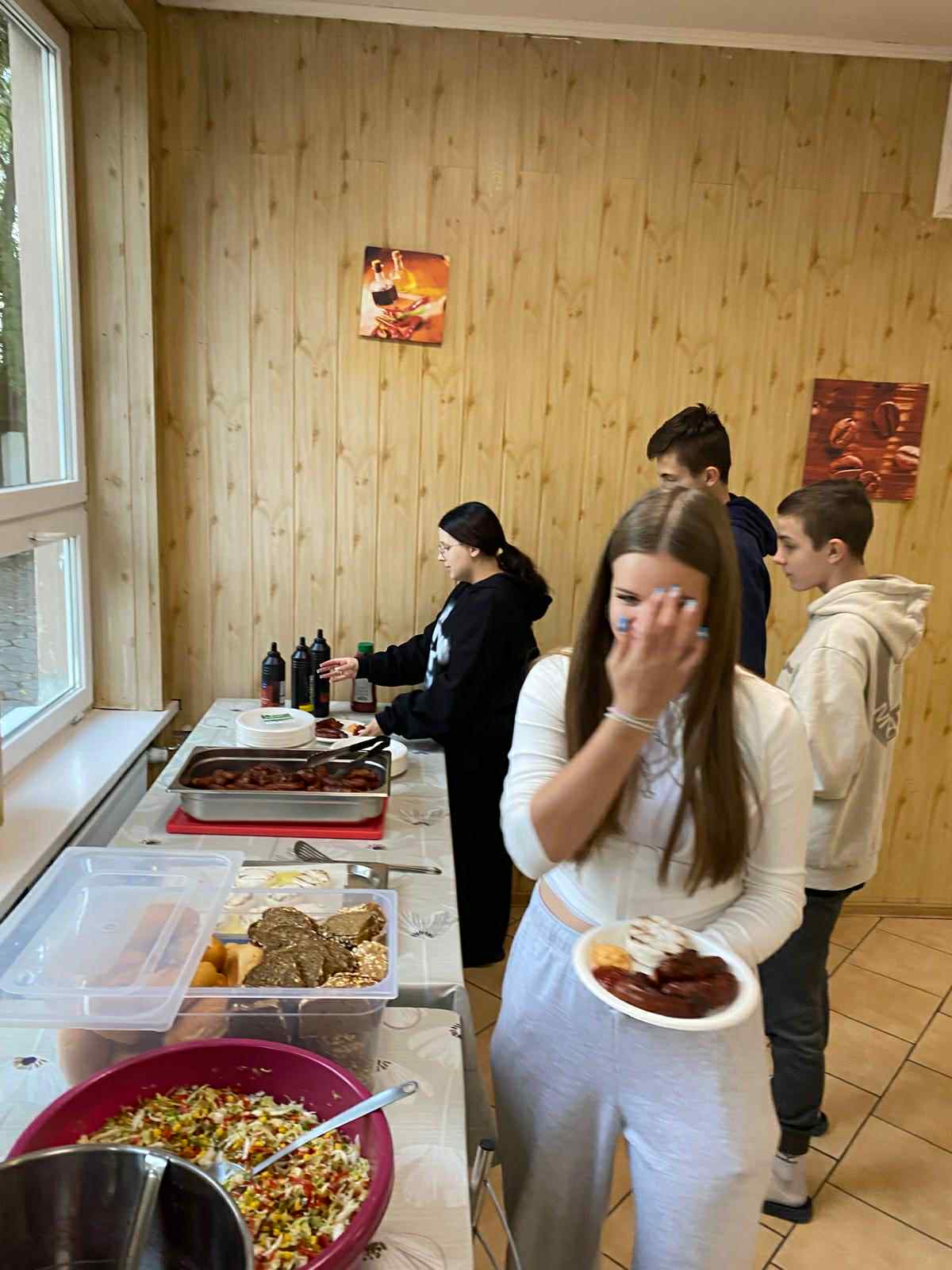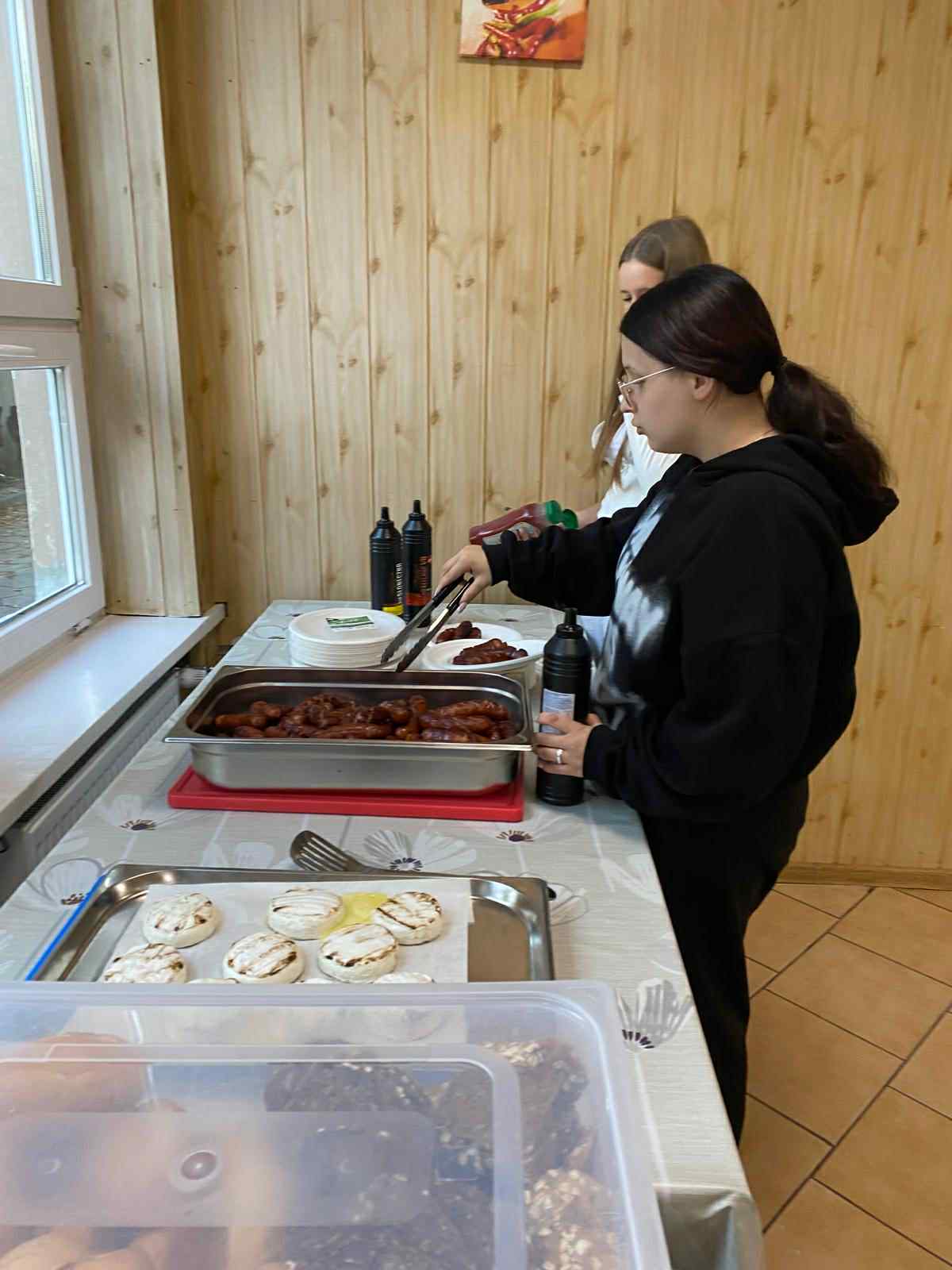 A po pracy – zasłużona nagroda! W stołówce czekały na nas grillowane kiełbaski i inne smakowite przysmaki, które znikały szybciej niż liście z chodnika. Atmosfera była gorąca, nie tylko od grilla – bo nic tak nie łączy, jak wspólna akcja i wspólny posiłek.